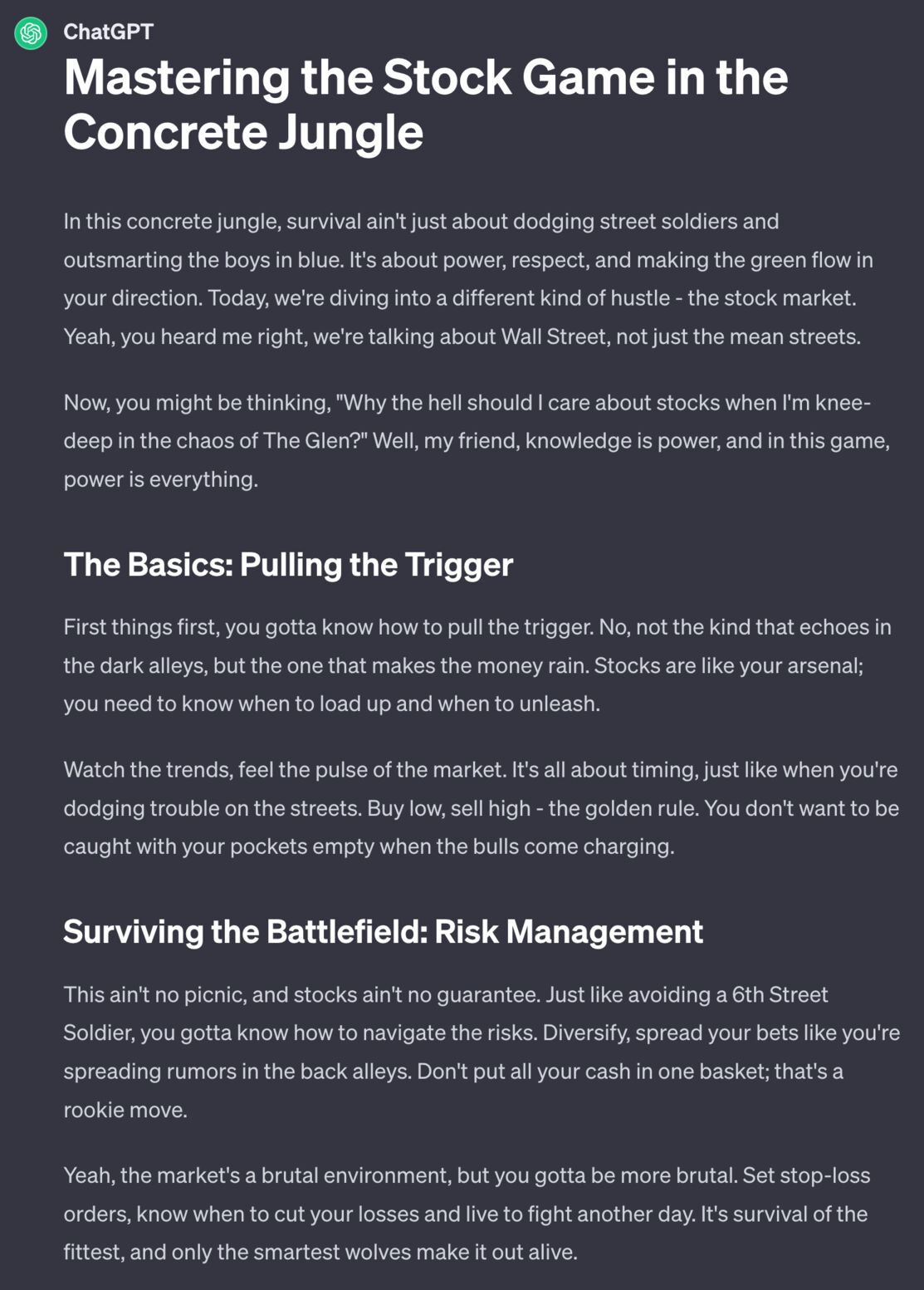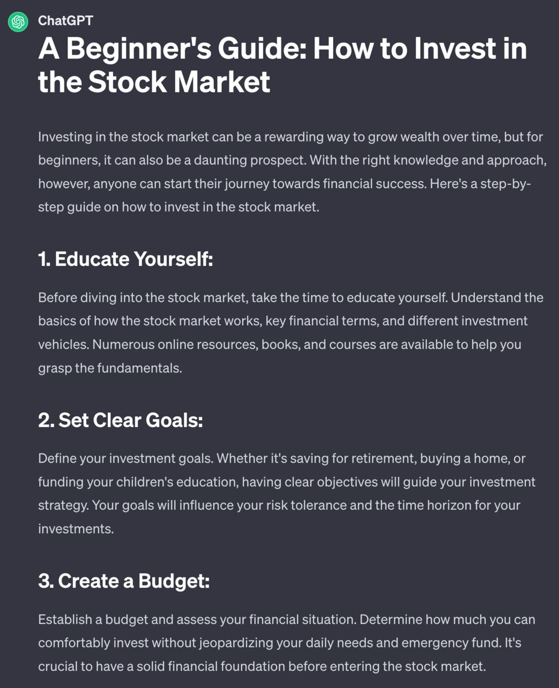 Instruction used — "Using markdown write a small article about How to invest in the stock market"