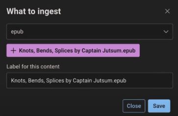 To ingest books or research papers, you will need them in a digital format, such as ePub or PDF. You can either use the ones you’ve already purchased or use public domain books freely available.