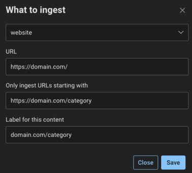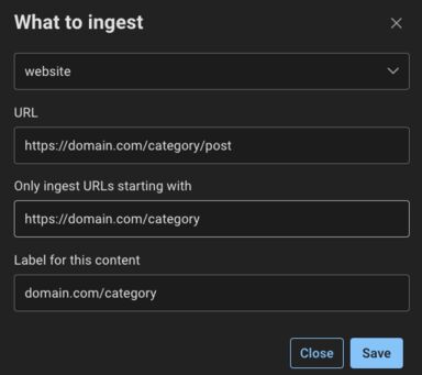 The prefix allows you to limit what pages are ingested. You can set the prefix in the “Only ingest URLs starting with” text field, and if it’s left empty, it will use the URL field as the prefix to match.