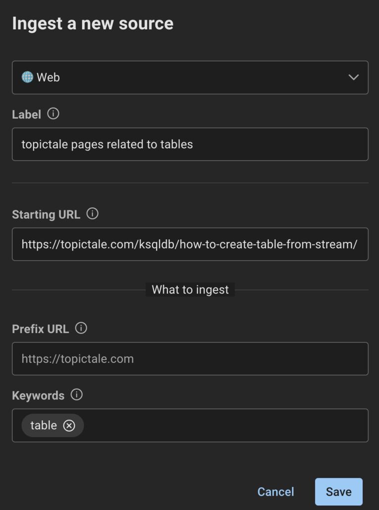 The web ingestor has been enhanced to provide greater control over which pages get ingested. In addition to limiting ingestion by URL prefix, users can now specify a list of keywords - pages containing any of these keywords will be ingested, while other pages will be excluded. This allows precise targeting of ingestion to only pages containing relevant content.